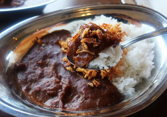 ライスにのったカリカリのフライドオニオンが癖になります。
