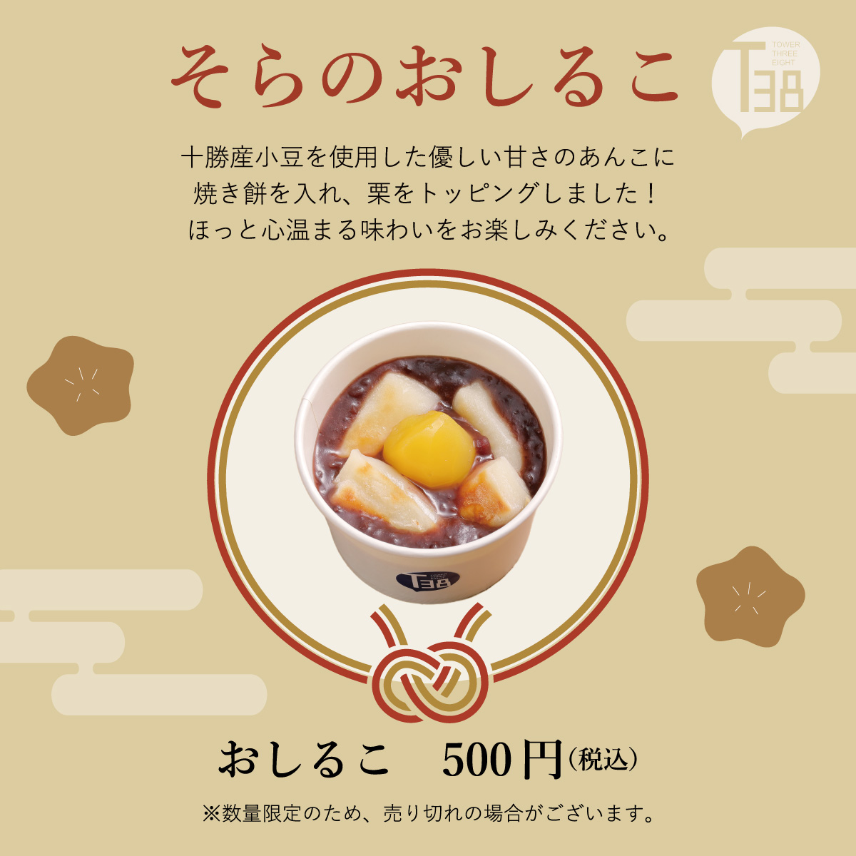 ※おしるこは数量限定のため、売り切れの場合がございます。